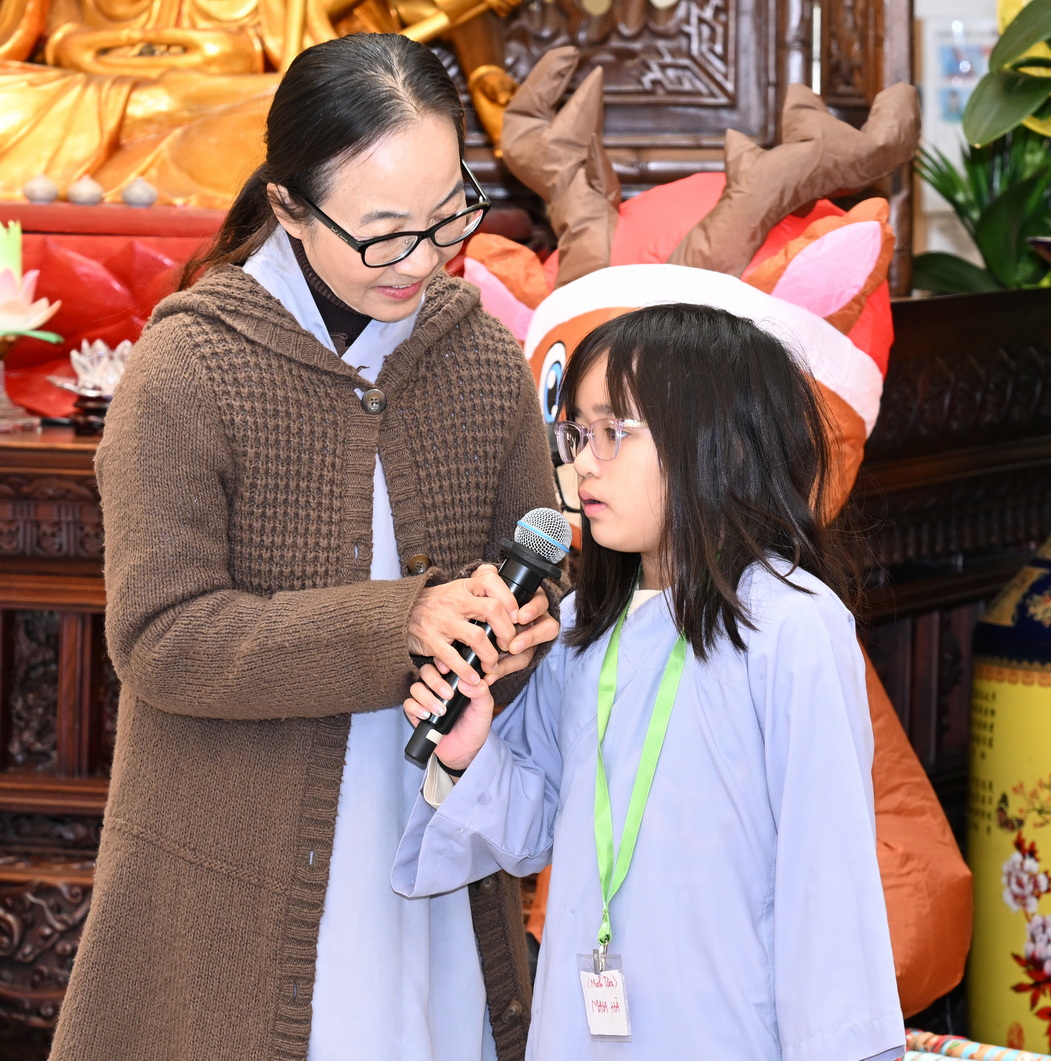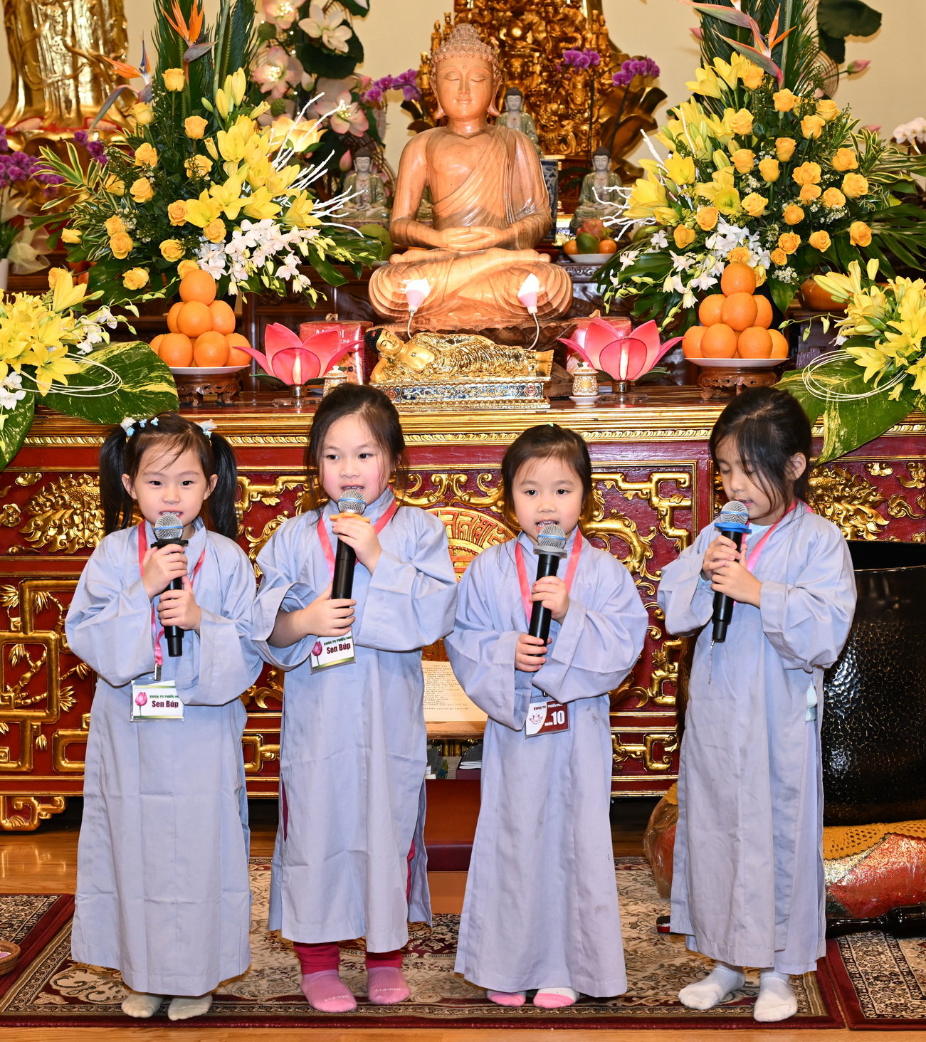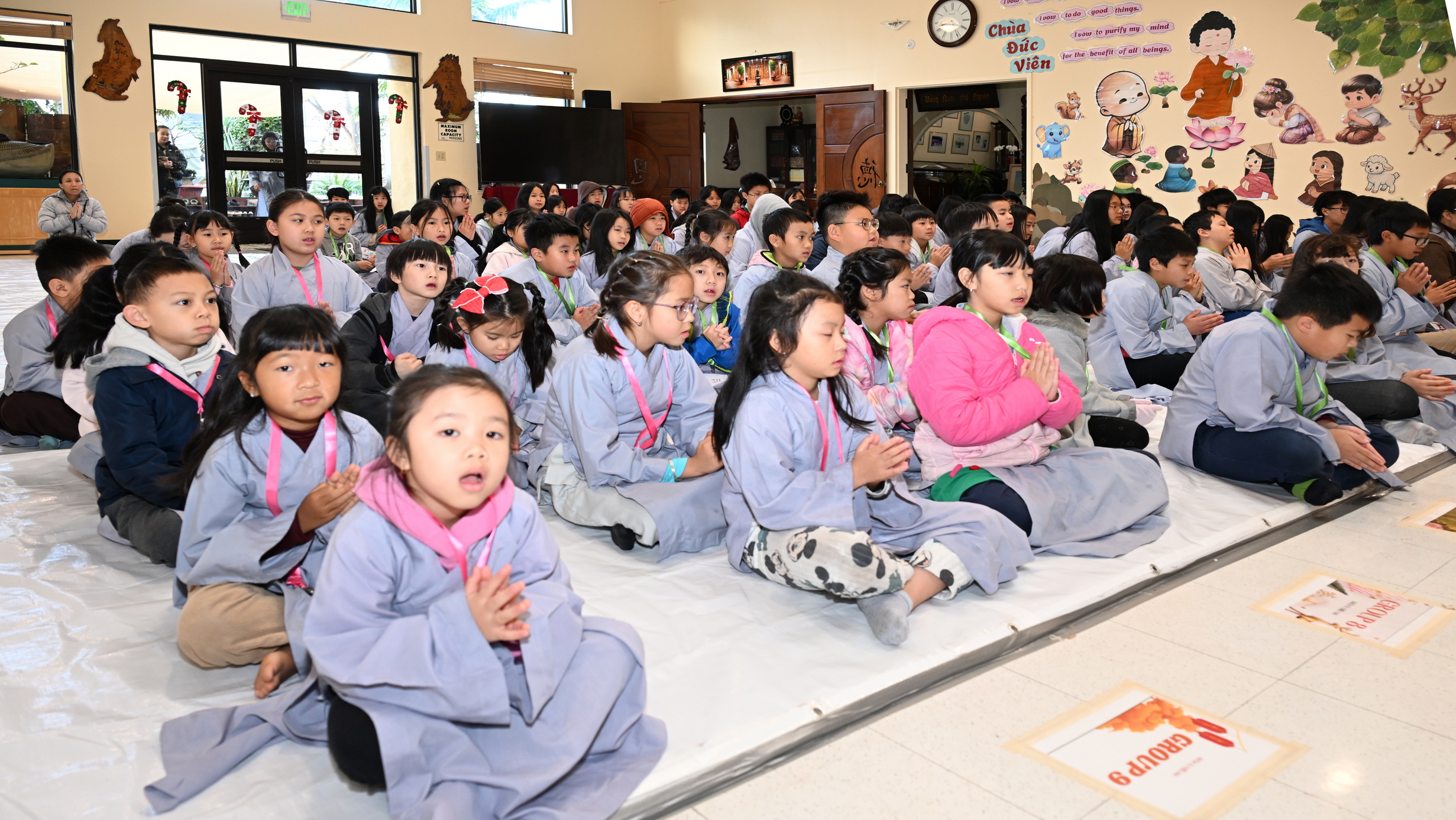 Chùa Đức Viên, San Jose, Hoa Kỳ. Khóa tu thiếu nhi mùa Đông 2025 – Ngày tu học thứ 3: 27/12/2025 Chú thích ảnh: 02-11 Sinh hoạt chung tại trai đường. Các anh chị hướng dẫn và các em thiếu nhi phát biểu cảm tưởng. 12-28 Sinh hoạt chung tại chánh điện. Lễ Phật, tụng kinh (tiếng Anh), lạy tứ ân và nhiễu Phật. 29-32 Các nhóm 5-8 học tập tại sân chùa. Thầy Thiện Bửu giảng về các danh hiệu Phật, Bồ tát. 33-34 Các nhóm 1-4 học tập tại chánh điện. Sư cô Trung Như và anh Johnathan chia sẻ chủ đề khóa tu: “Hạnh phúc Chân thật”. 35-37 Giờ ăn trưa 38-40 Các nhóm 1-4 học tập tại chánh điện. Nhiếp ảnh gia Võ Văn Tường giới thiệu các ngôi chùa nổi tiếng ở miền Bắc Việt Nam (ảnh: Nhật Thành) 41-50 Sinh hoạt chung tại chánh điện. Lễ Phật, tụng kinh (tiếng Anh), lạy tứ ân. 51-66 Sinh hoạt chung tại chánh điện. Các nhóm thi niệm Phật. 67-69 Giờ ăn chiều 70-73 Hình tập thể các nhóm và tập thể chung. Ảnh: Võ Văn Tường