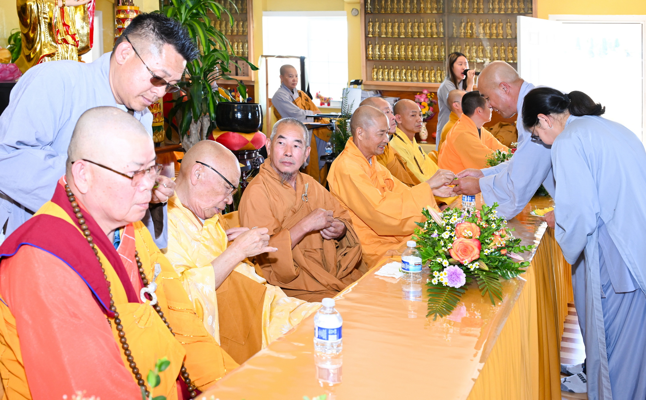 Quang lâm Chứng minh buổi lễ có: Trưởng lão Hòa thượng Thích Tịnh Từ, Viện trưởng tu viện Kim Sơn (Watsonville) và tu viện Thôn Yên (Gilroy); Hòa thượng Thích Thông Đạt, Trụ trì chùa Đại Nhật Như Lai (San Jose); Hòa thượng Thích Nhựt Huệ, Viện chủ chùa Duyên Giác và tu viện Năng Nhơn (San Jose); Hòa thượng Thích Từ Lực, Viện chủ chùa Phổ Từ (Hayward), thiền viện Phổ Thiên (Castro Valley) và trung tâm tu học Phổ Trí (Vacaville); Ni trưởng Thích Nữ Nguyên Thanh, Trụ trì chùa An Lạc (San Jose); Sư Bà Thích Nữ Đồng Kính, Trụ trì thiền viện Vô Ưu (San Martin). Tham dự buổi lễ có đông đảo chư Tôn Đức Tăng, Ni nhiều tự viện ở miền Bắc California; Phật tử ở San Jose và các thành phố lân cận, Đạo tràng chùa Duyên Giác, chùa Phổ Từ, tu viện Huyền Không …