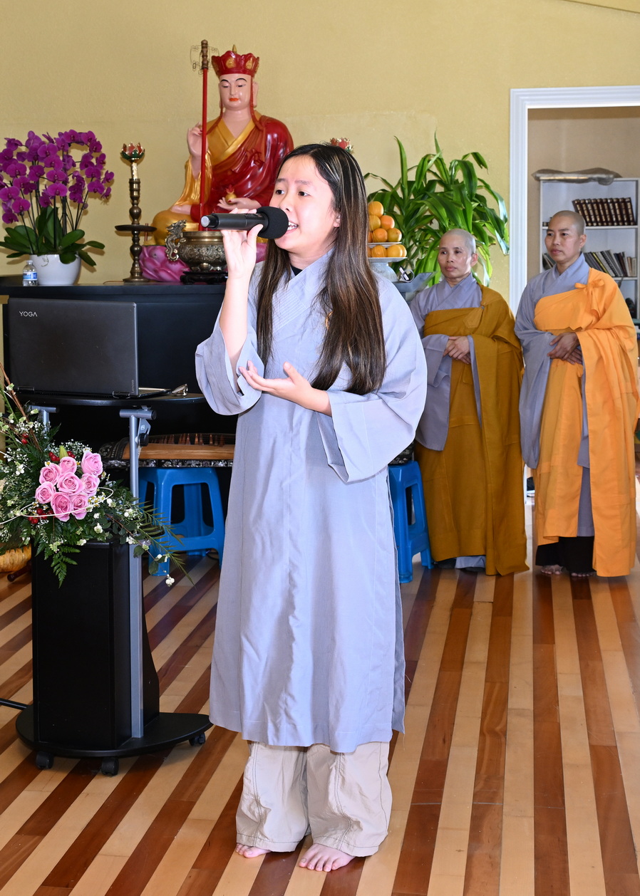 - Lễ Vu Lan báo hiếu: Đạo từ của Hòa thượng Thích Tịnh Từ; phát biểu chúc mừng của đại diện Chính quyền địa phương; phát biểu của Hòa thượng Thích Nhựt Huệ; lời dẫn ngày lễ báo hiếu của Ni sư Thích Nữ Kiều Thuận; lễ cài hoa hồng; các bài hát về tình cha, tình mẹ.