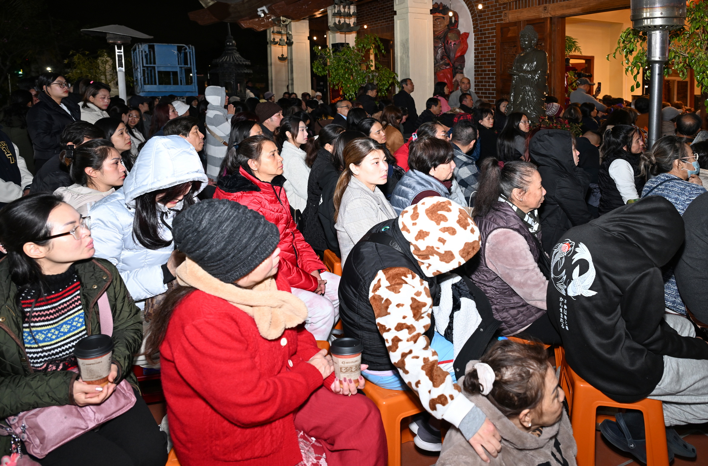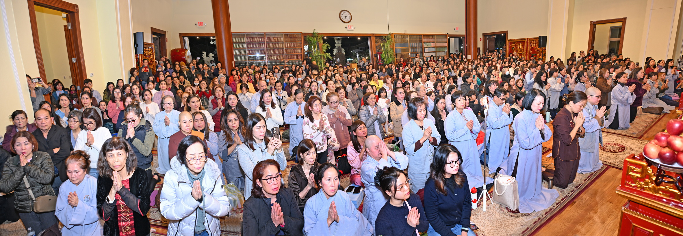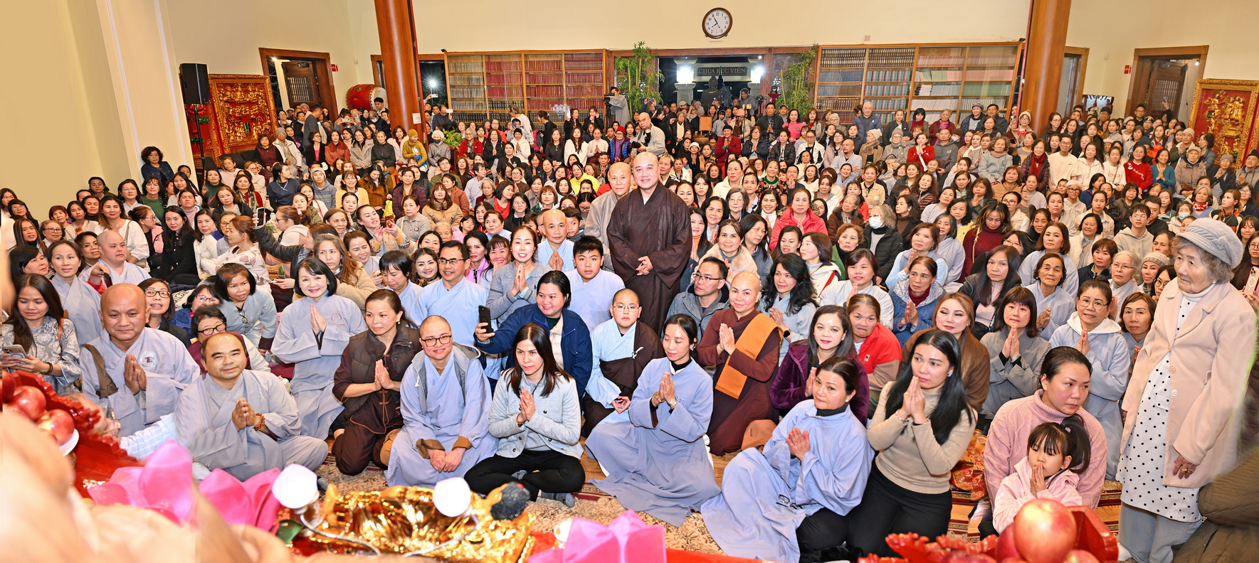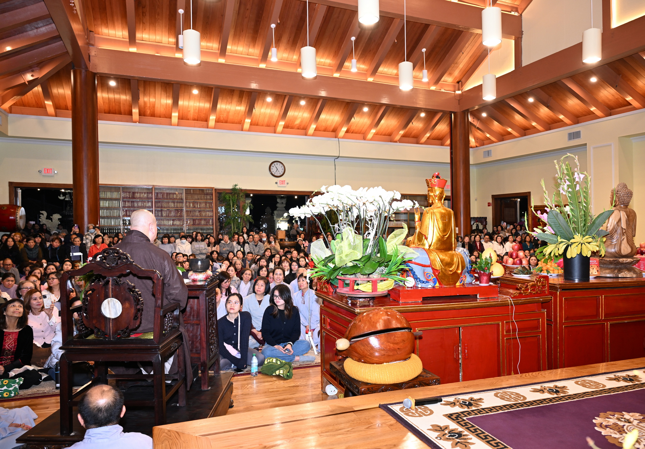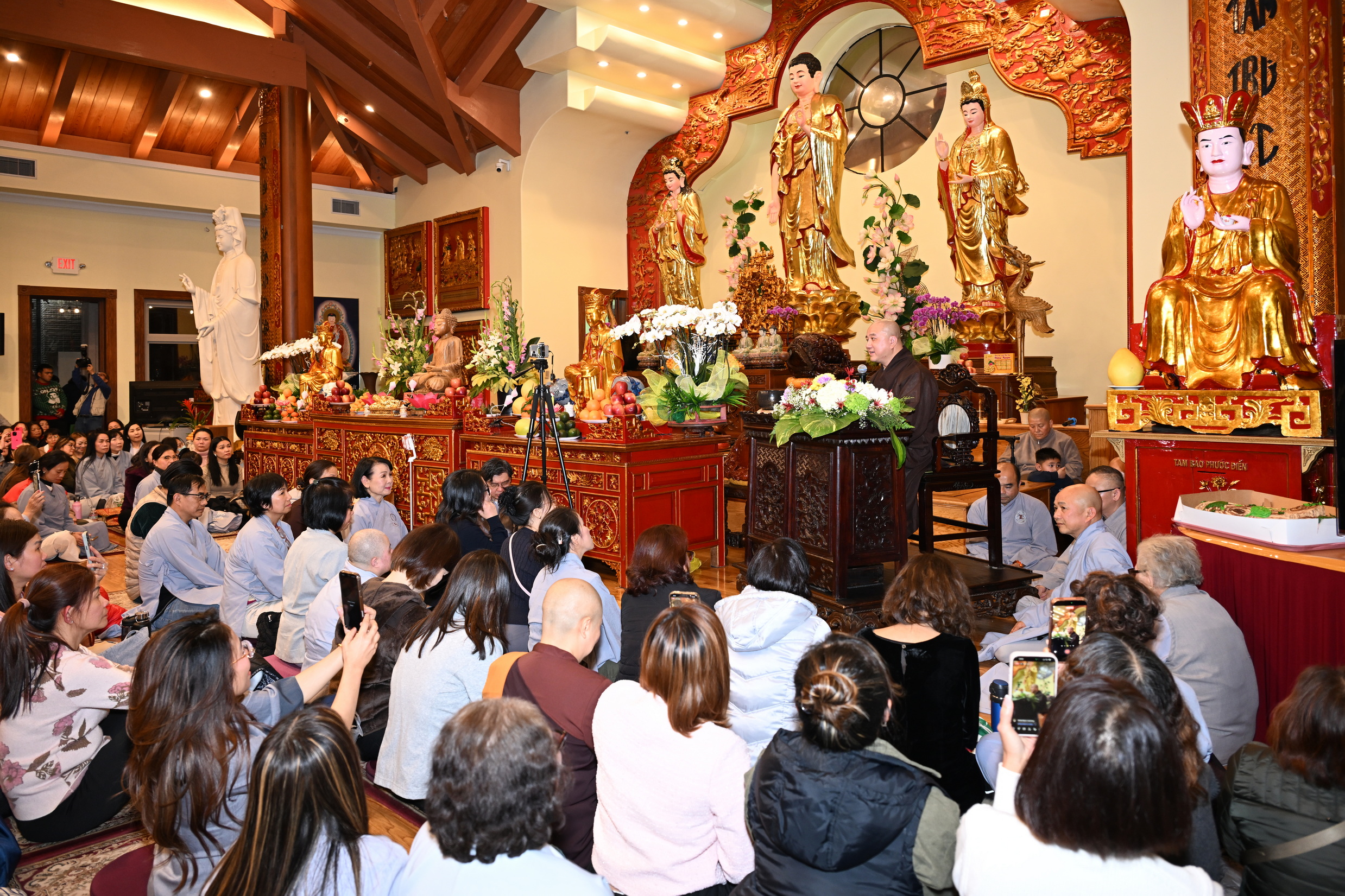 Số lượng thính chúng gần cả ngàn người, ngồi chật kín trong chánh điện, sân trước, hành lang, sân sau, vườn chùa … Nhiều Phật tử cao niên đã đến chùa từ trưa; vất vả tìm chỗ đậu xe (parking) khá xa chùa để vào được bên trong chánh điện.