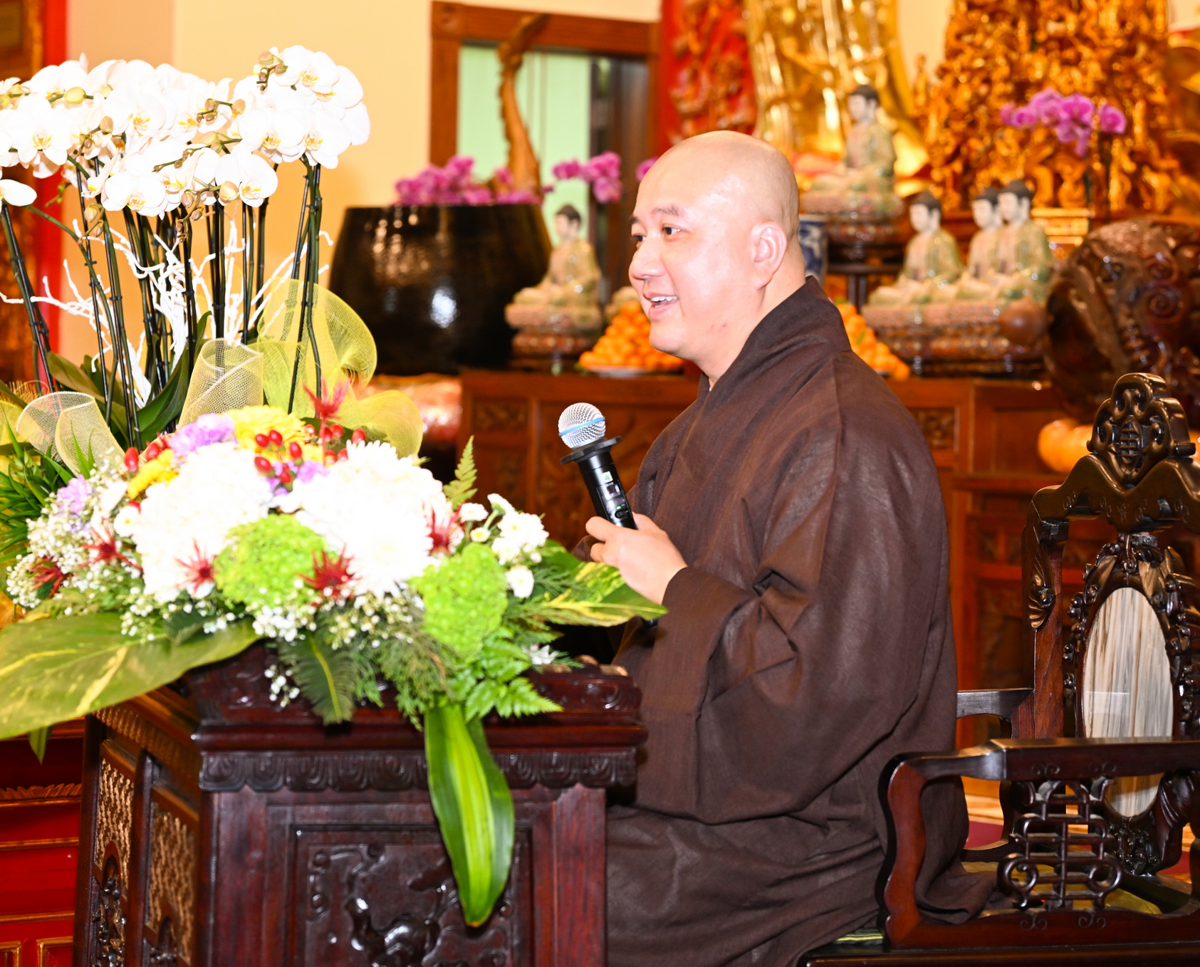 Trong 100 phút giảng pháp và giải đáp vài câu hỏi của Thượng tọa giảng sư, Đạo tràng thật trang nghiêm, thật vui vẻ với các tràng vỗ tay, tiếng cười liên tục. Thượng tọa giảng sư còn dành hơn 30 phút chụp hình lưu niệm với từng nhóm Phật tử sau buổi giảng.