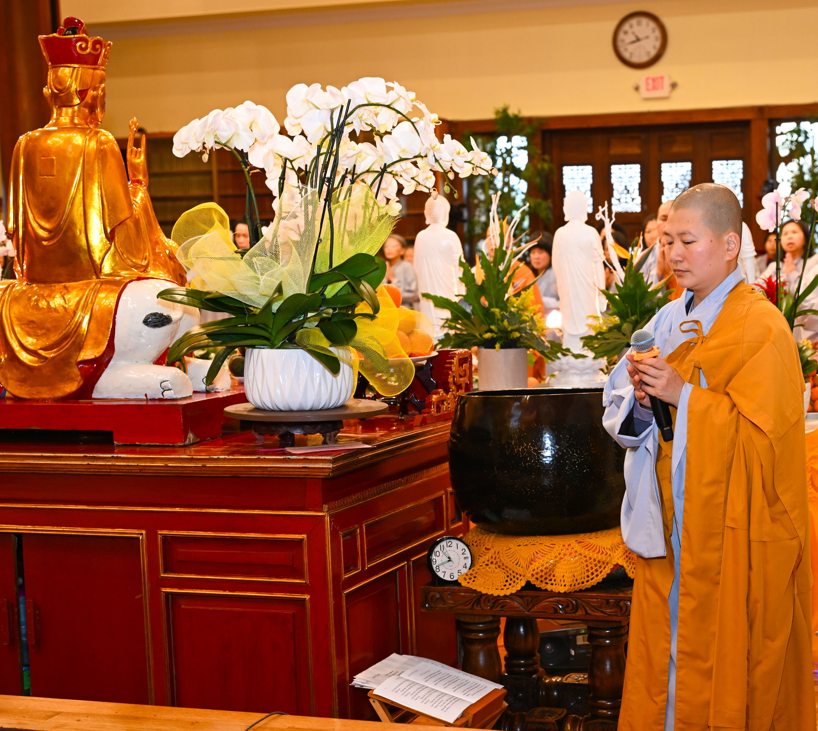 Chư Ni và Phật tử tụng kinh, nghe khai thị.