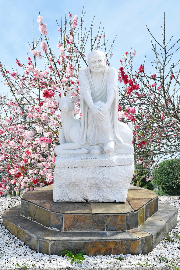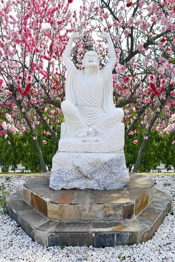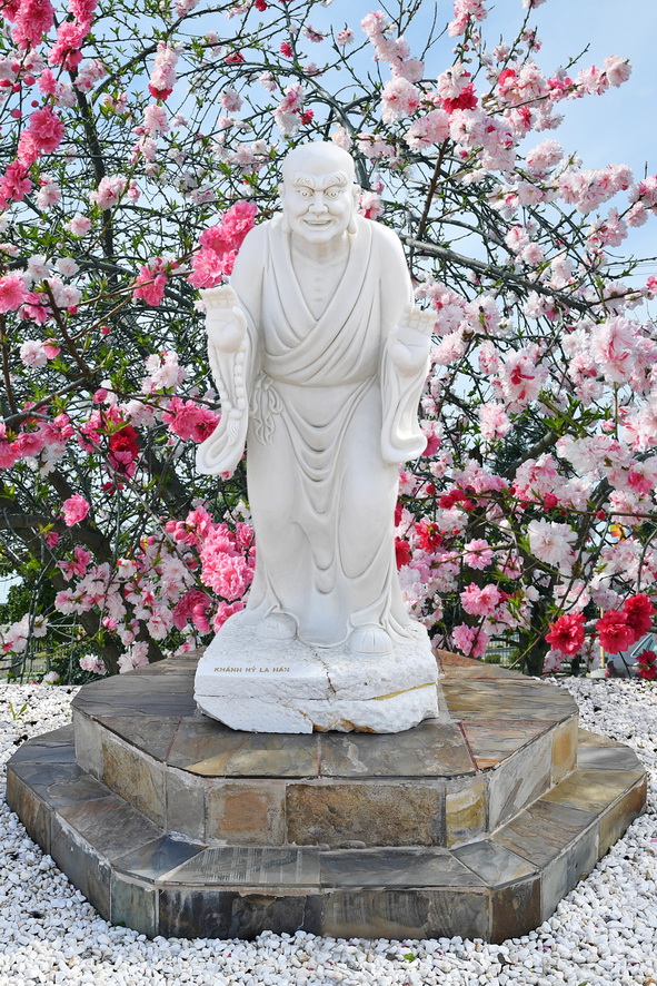 Chùa Thiện Ân, Fresno, Hoa Kỳ với vườn tượng A La Hán và vườn hoa anh đào tuyệt đẹp! Chùa Thiện Ân Địa chỉ: 4354 W. Mckinley Avenue, Fresno, CA 93722 Điện thoại: (559) 515-6838; (559) 770-4975 Email: thichtrungtinh@gmail.com Trú trì: Tỳ kheo Thích Trung Tịnh Bộ tượng 18 vị A La Hán Chất liệu: đá trắng Nơi tạo tác: Ngũ Hành Sơn, Đà Nẵng. Chiều cao trung bình: 1,70m Trọng lượng: 2 tấn/tượng An vị tại chùa: năm 2014 Hình ảnh: Võ Văn Tường (07.3.2021)
