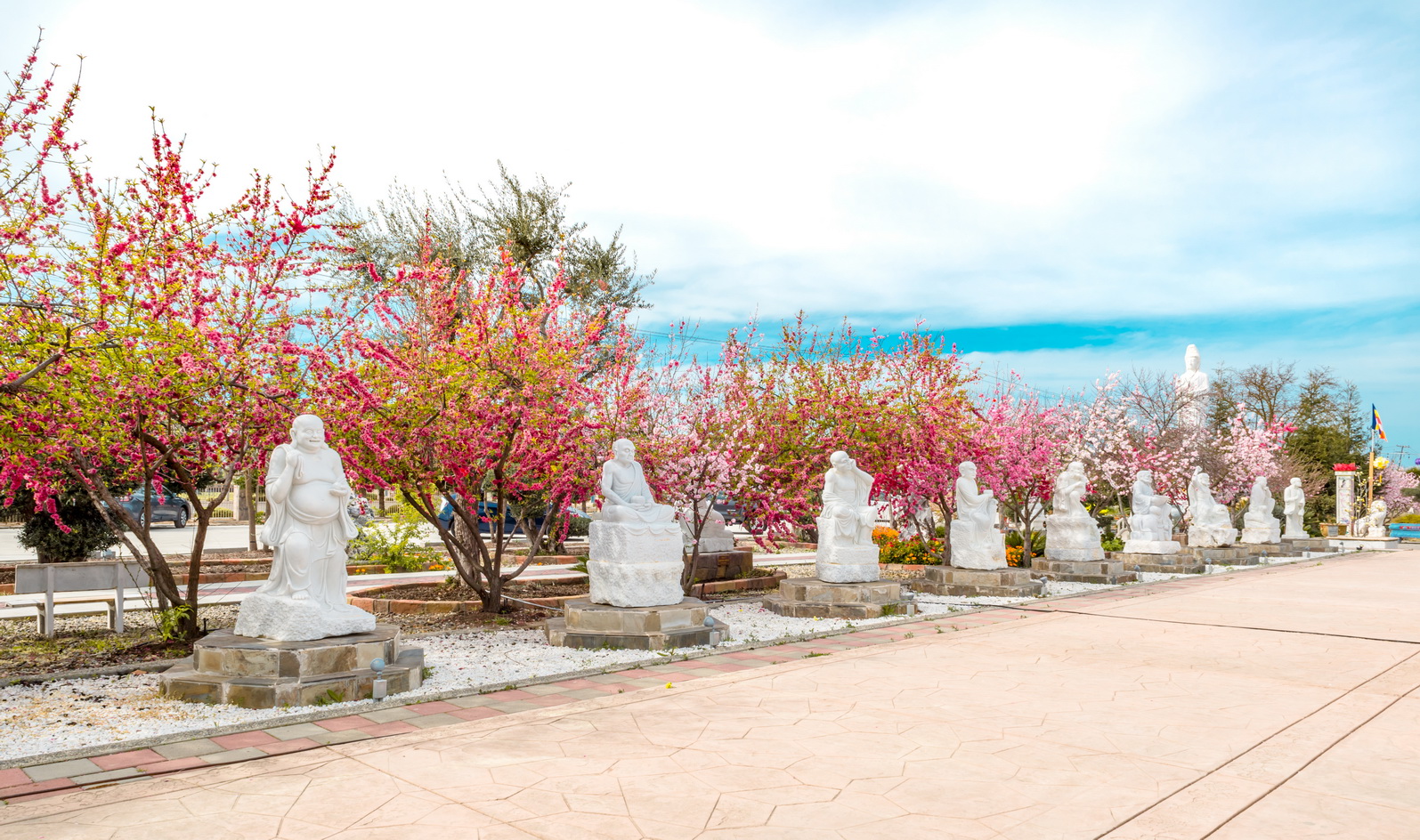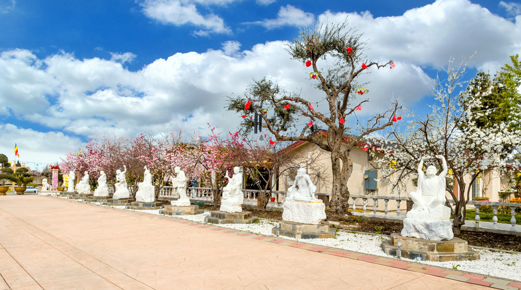 CHÙA THIỆN ÂN, FRESNO (HOA KỲ) VỚI VƯỜN TƯỢNG A LA HÁN VÀ VƯỜN HOA ANH ĐÀO TUYỆT ĐẸP!