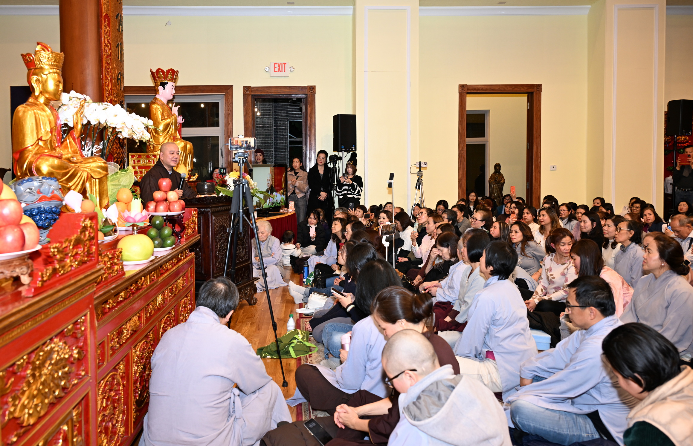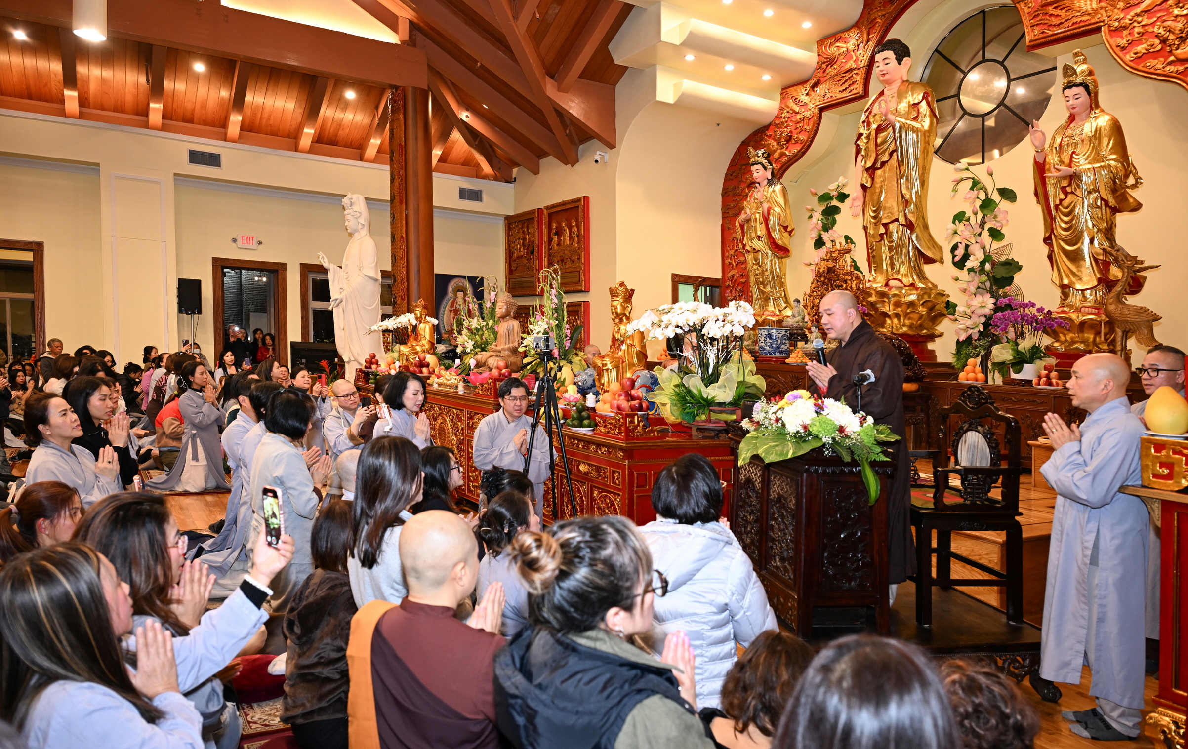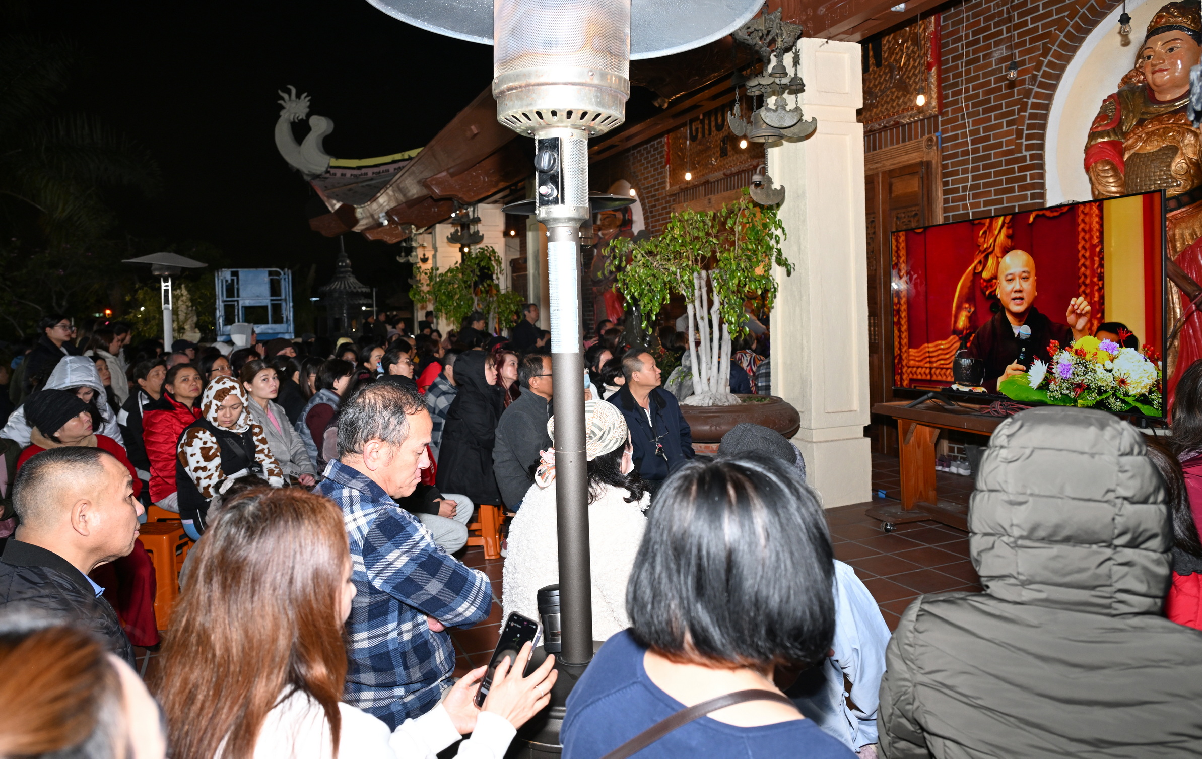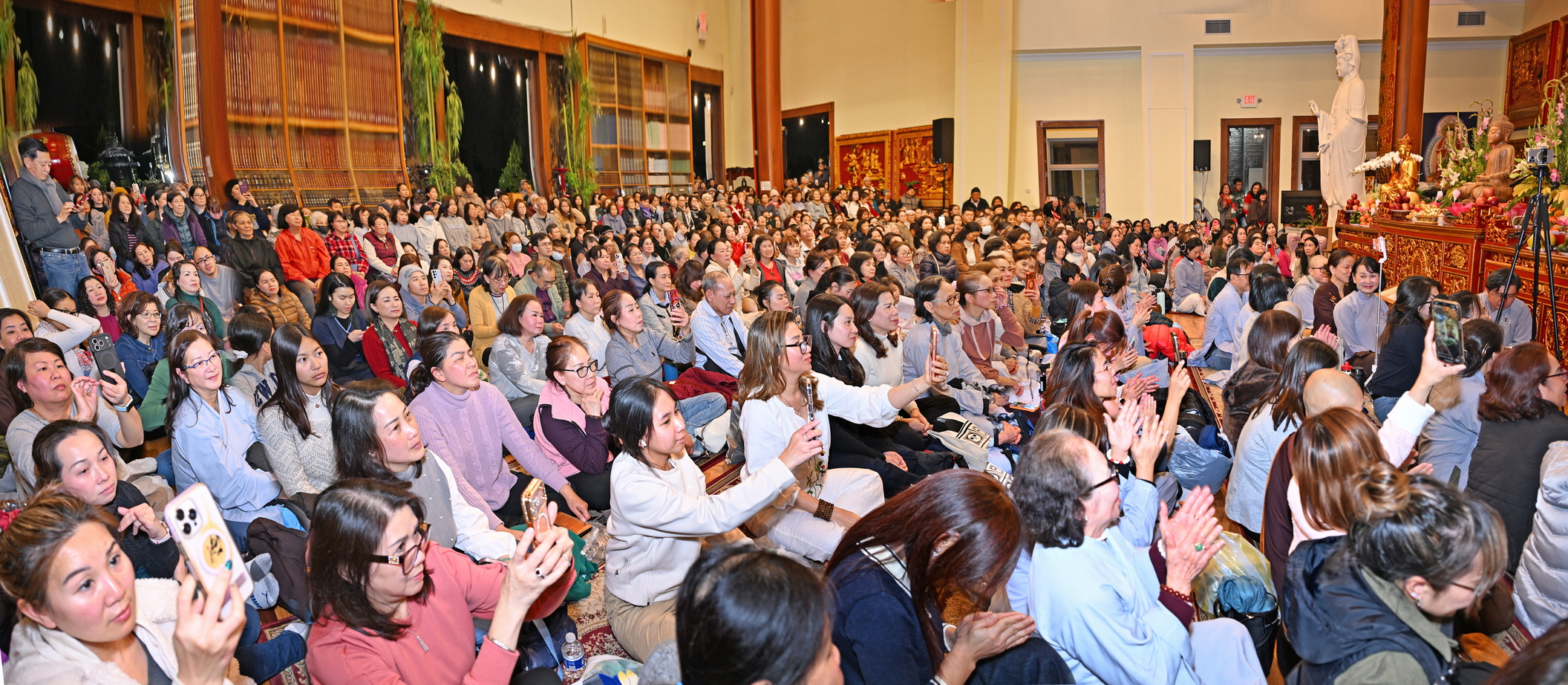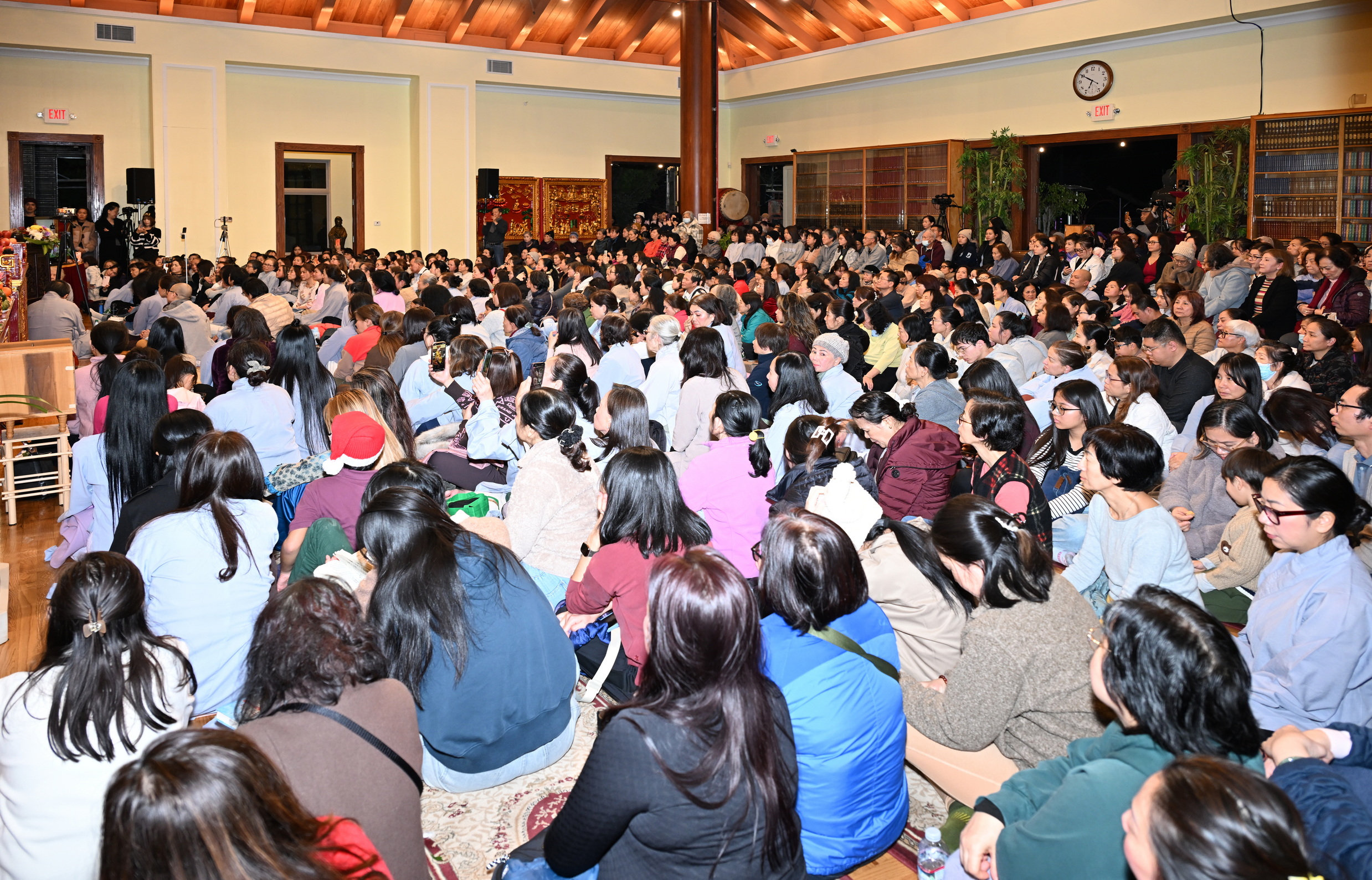 Số lượng thính chúng gần cả ngàn người, ngồi chật kín trong chánh điện, sân trước, hành lang, sân sau, vườn chùa … Nhiều Phật tử cao niên đã đến chùa từ trưa; vất vả tìm chỗ đậu xe (parking) khá xa chùa để vào được bên trong chánh điện.