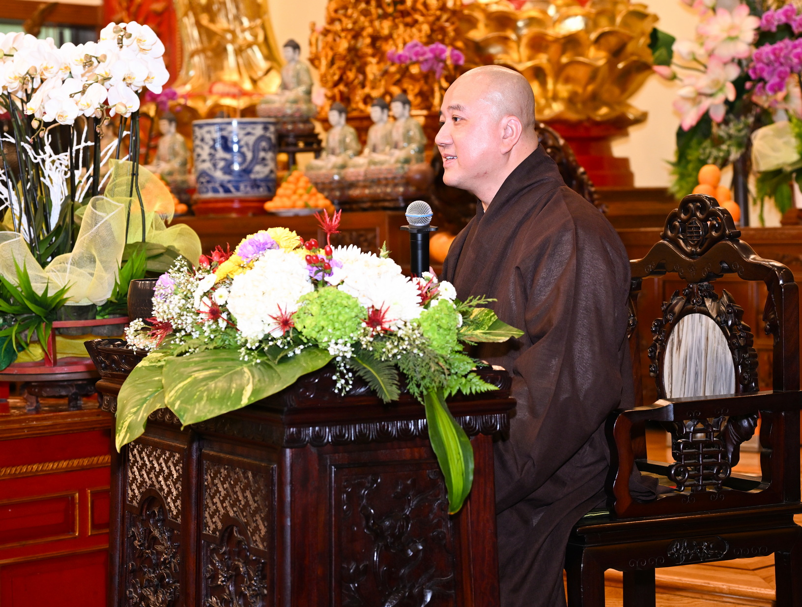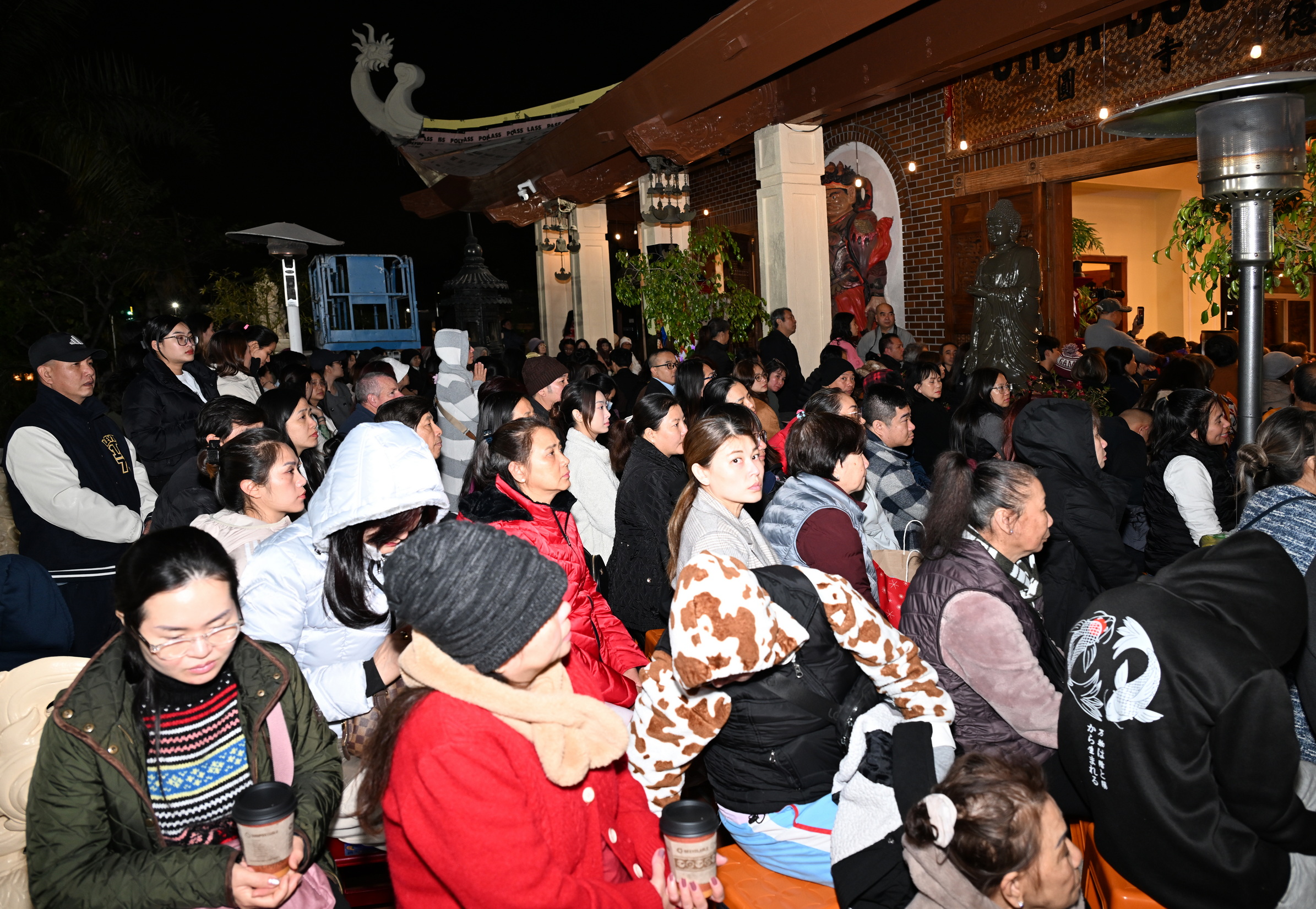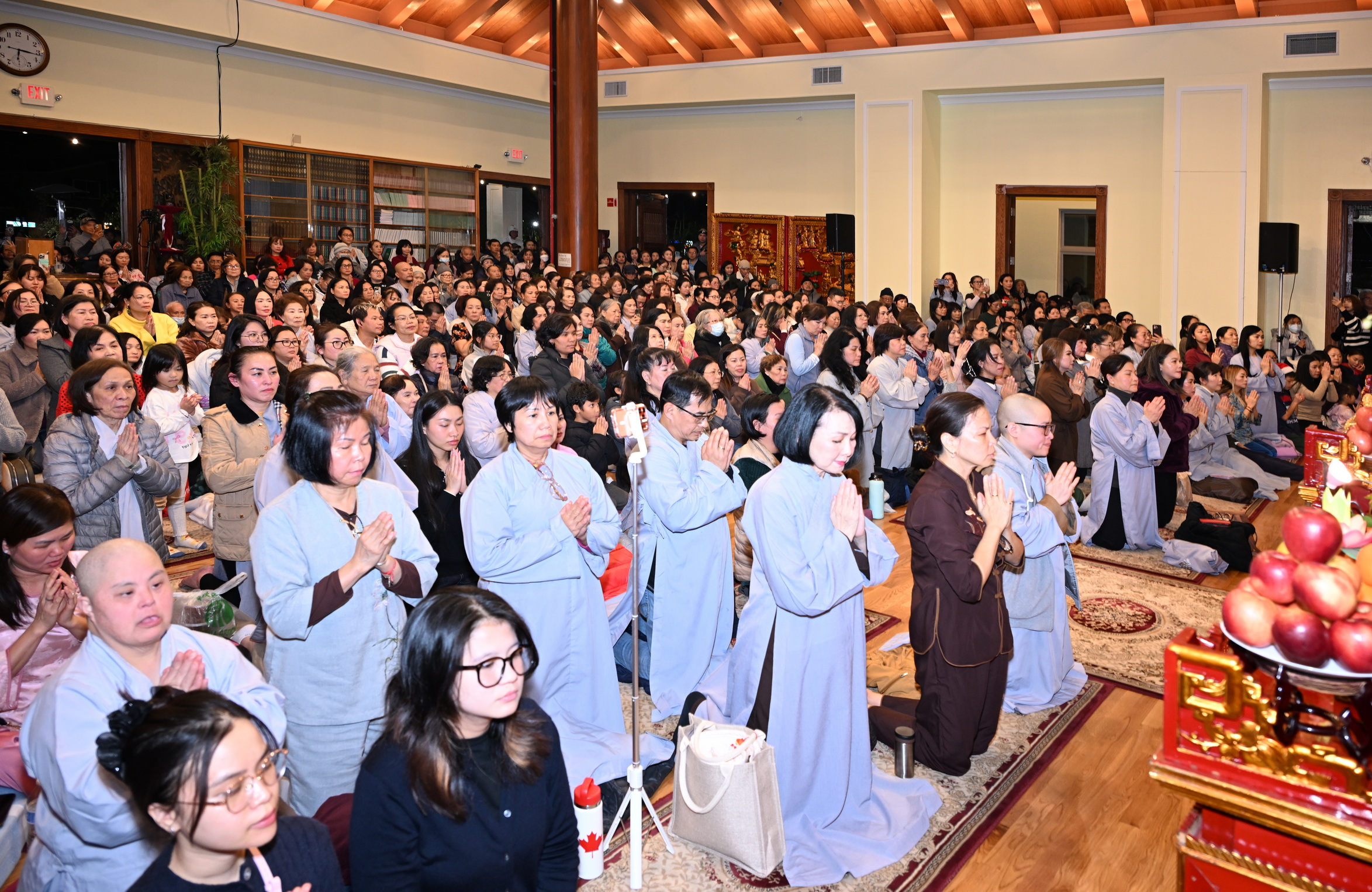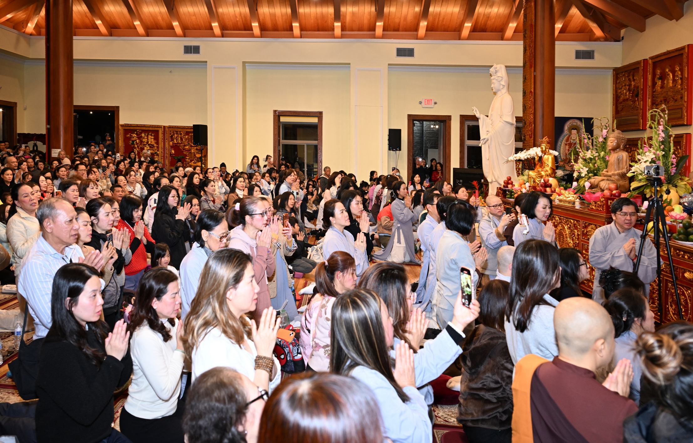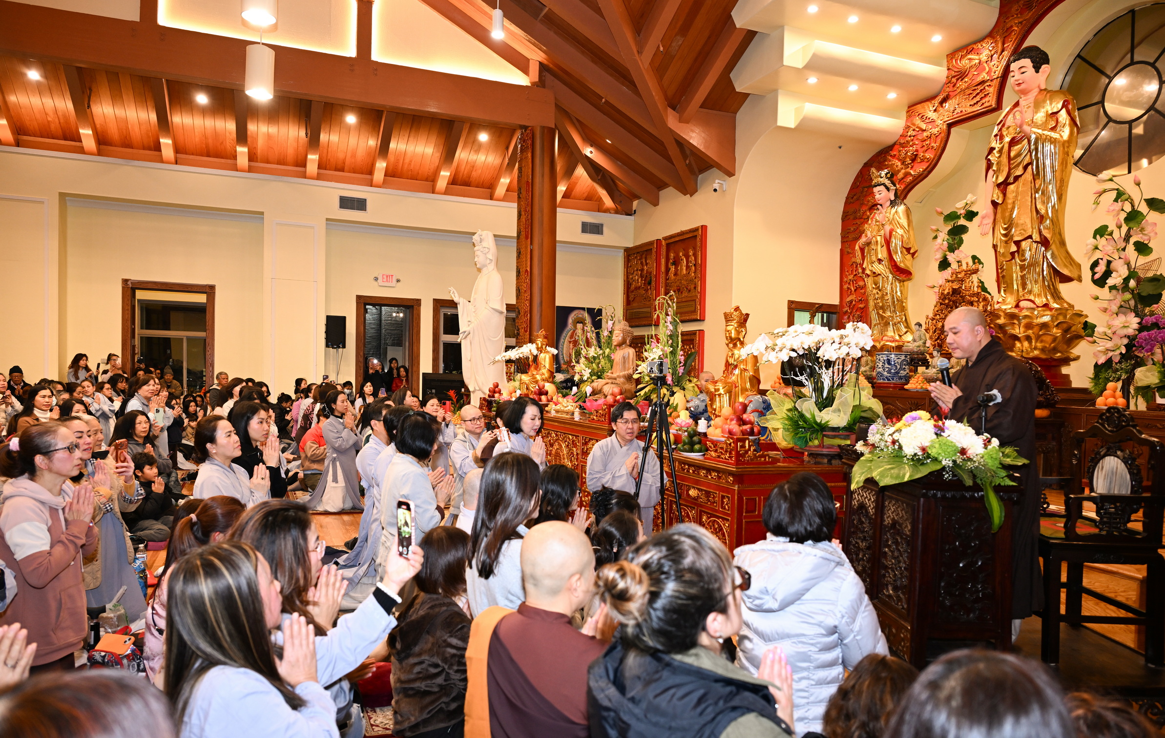 Số lượng thính chúng gần cả ngàn người, ngồi chật kín trong chánh điện, sân trước, hành lang, sân sau, vườn chùa … Nhiều Phật tử cao niên đã đến chùa từ trưa; vất vả tìm chỗ đậu xe (parking) khá xa chùa để vào được bên trong chánh điện.