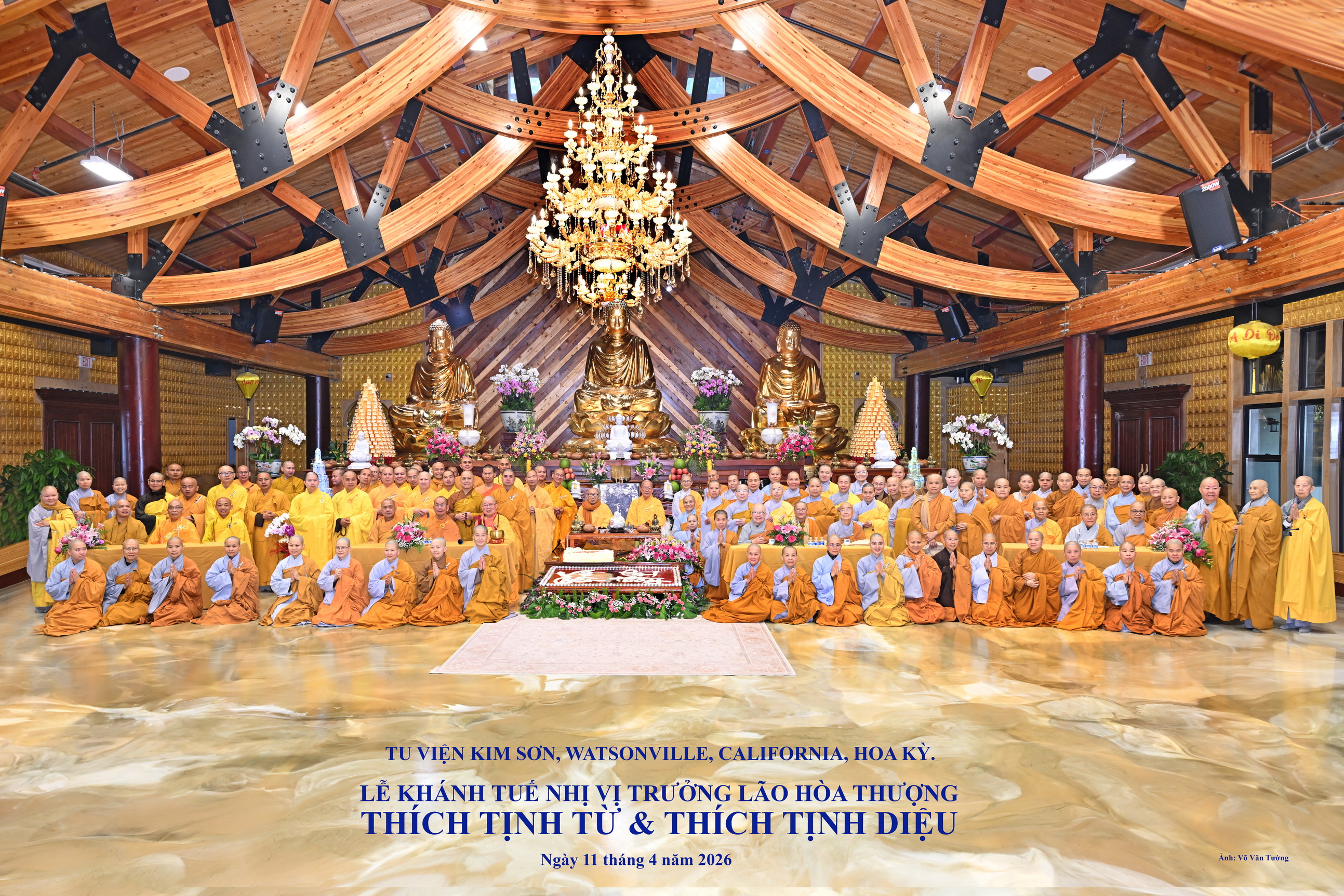 Vào sáng ngày 11 tháng 4 năm 2026, Tăng thân tu viện đã long trọng tổ chức Lễ khánh tuế nhị vị Trưởng lão Hòa thượng Thích Tịnh Từ (84 tuổi) và Trưởng lão Hòa thượng Thích Tịnh Diệu (83 tuổi). Rất đông chư Tôn đức Tăng, Ni các tự viện Phật giáo ở tiểu bang California, một số tiểu bang ở Hoa Kỳ và một số tỉnh, thành phố ở Việt Nam đã về tu viện dự lễ.